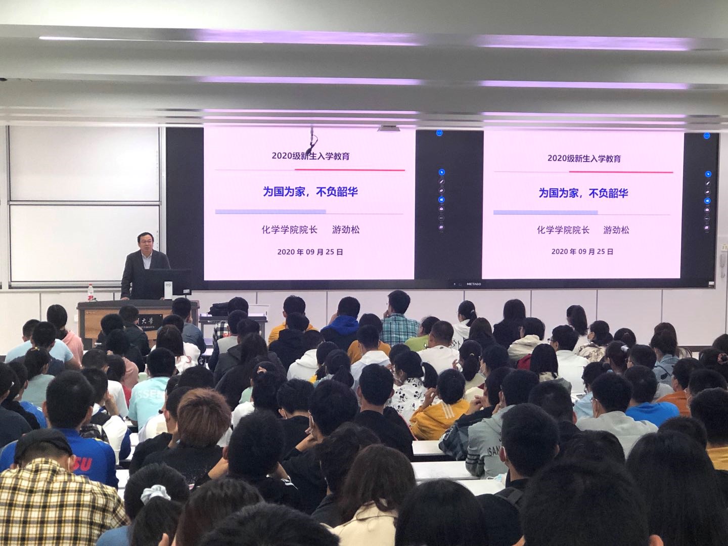 院长游劲松教授为2020级新生开展《为国为家,不负韶华》讲座。