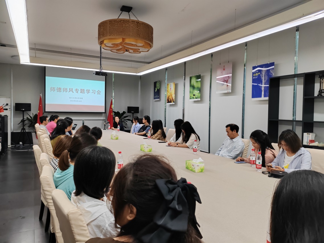 参观结束,召开了师德师风专题学习会,学院党委书记谢均为大家讲解了教育部《新时代高校教师职业行为十项准则》相关内容,并用《违反高校教师职业行为十项准则典型案例》和《违反科学道德的国内典型案例》对大家开展现实教育,希望大家恪守道德底线,做到廉洁自律。