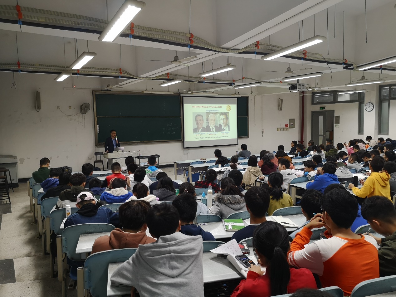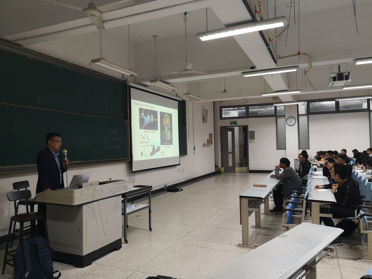 杨老师以2016年的诺贝尔化学奖——人工分子机器为引开始了今天的讲座,营造了浓郁的学术气息,介绍了人们在化学研究中从Nature等权威期刊中找到的灵感,引导同学们可以从生活中发现创新思维的方法和思路。随后,杨老师通过几个短视频生动地向同学们展示了ATP合成酶、马达蛋白等作用机理,介绍了超分子化学、光化学的相关概念。并从化学的角度给同学们解释了一些生活中、学习中大家常见的现象,介绍了阳离子识别、超分子作用等相关原理。