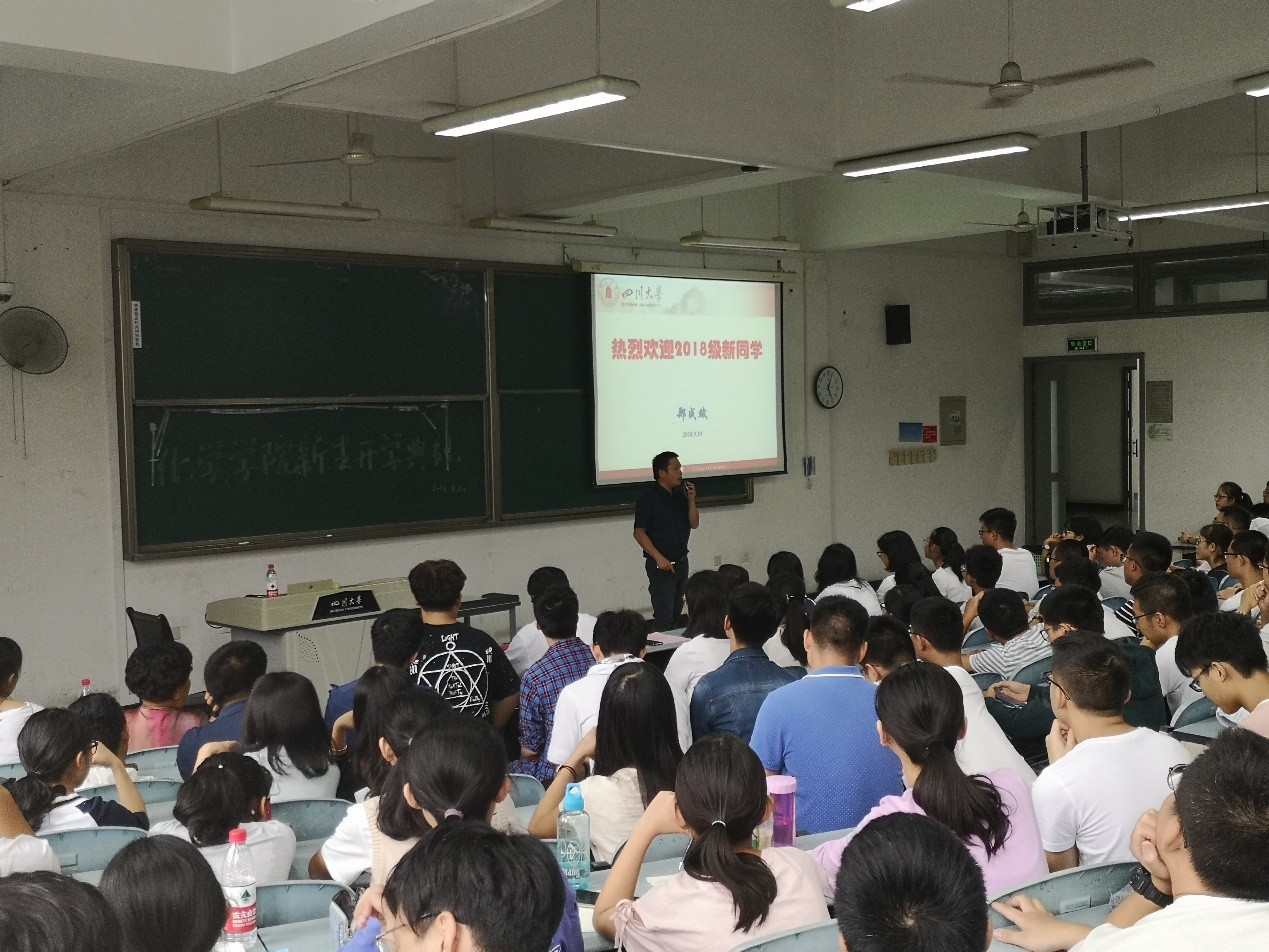 2018级新生开学典礼在江安校区综合楼举行。游劲松院长,王智猛书记,郑成斌副院长,郭明秀教导员,2018级辅导员张若一老师出席了本次开学典礼。