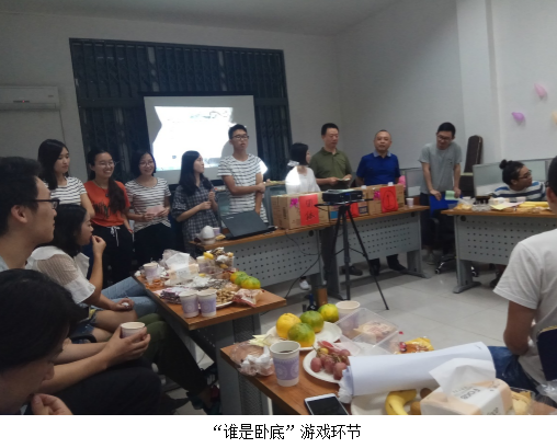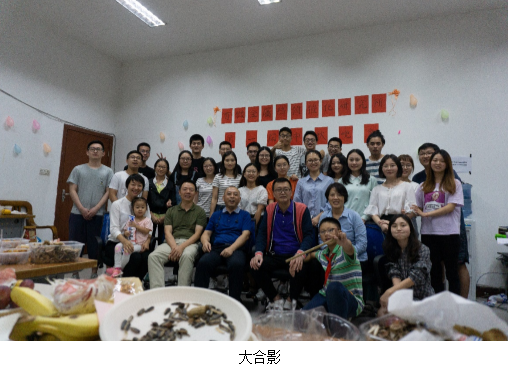 在晚会正式开始前,研究所老师同学们首先进行了猜灯谜的游戏。灯谜难度虽大,但大家思索的热情却更高。晚上6点,晚会正式开始,唐松柏同学担任此次晚会主持人,介绍了中秋节起源、研究所的历史与现状以及举办此次晚会的目的与意义。研究所内成员各展其才,进行了唱歌、跳舞、小品、吉他演奏、架子鼓演奏等才艺表演。表演结束后,李顺同学担任小组比赛主持人。同学们被随机分为五组,每位老师带领一组。小组进行了知识问答、配音游戏、你比我猜、抱团游戏、谁是卧底等比赛,并进行打分。激烈的竞争的同时伴随着发自内心的欢笑。晚会最后,根据个人猜中灯谜的数量和小组得分颁发了相应奖励,晚会在老师同学们合唱《难忘今宵》的歌声中顺利结束。会后研究所成员进行了合影。