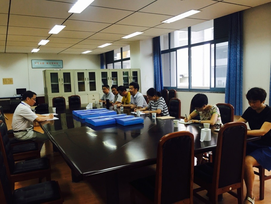 校督导委专家朱建国教授莅临我中心指导本科教学评估准备工作。化学实验教学中心常务副主任王玉良教授、各实验室主任、教师代表和实验技术人员代表参加了此次检查。首先,王玉良副主任向督导专家汇报了实验中心管理运行、教学体系建设、本科人才培养等情况。随后,督导专家查阅了中心规章制度、安全保障、实验报告样本等相关资料,并对各楼层实验室进行了实地考察。最后,督导专家朱建国教授对实验中心管理运行合理规范、本科教学开放创新培养效果突出等成绩给予了充分肯定,并进一步对做好本科教学工作提出了宝贵的意见和建议。王玉良副主任及在场的任课教师、实验技术人员纷纷表示,将结合本次校内教学检查工作,进一步提高实验中心本科教学质量,为培养优秀本科人才多做贡献,积极迎接国家本科教学评估检查。