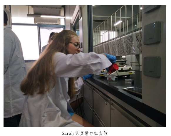 首先,由创意化学社文铭同学简要介绍了创意化学社的基本情况,并就创化近年来取得的一些成果进行简要展示,赢得了留学生的阵阵称赞。之后,蒋煜治同学详细讲解当天要做的两个实验,从原理、方法、注意事项等方面介绍实验内容,分别为:自制口红和银镜。然后中外学生们一起完成了本次的实验。外国学生们对于自制口红有着极大的兴趣,做出了漂亮的成品。