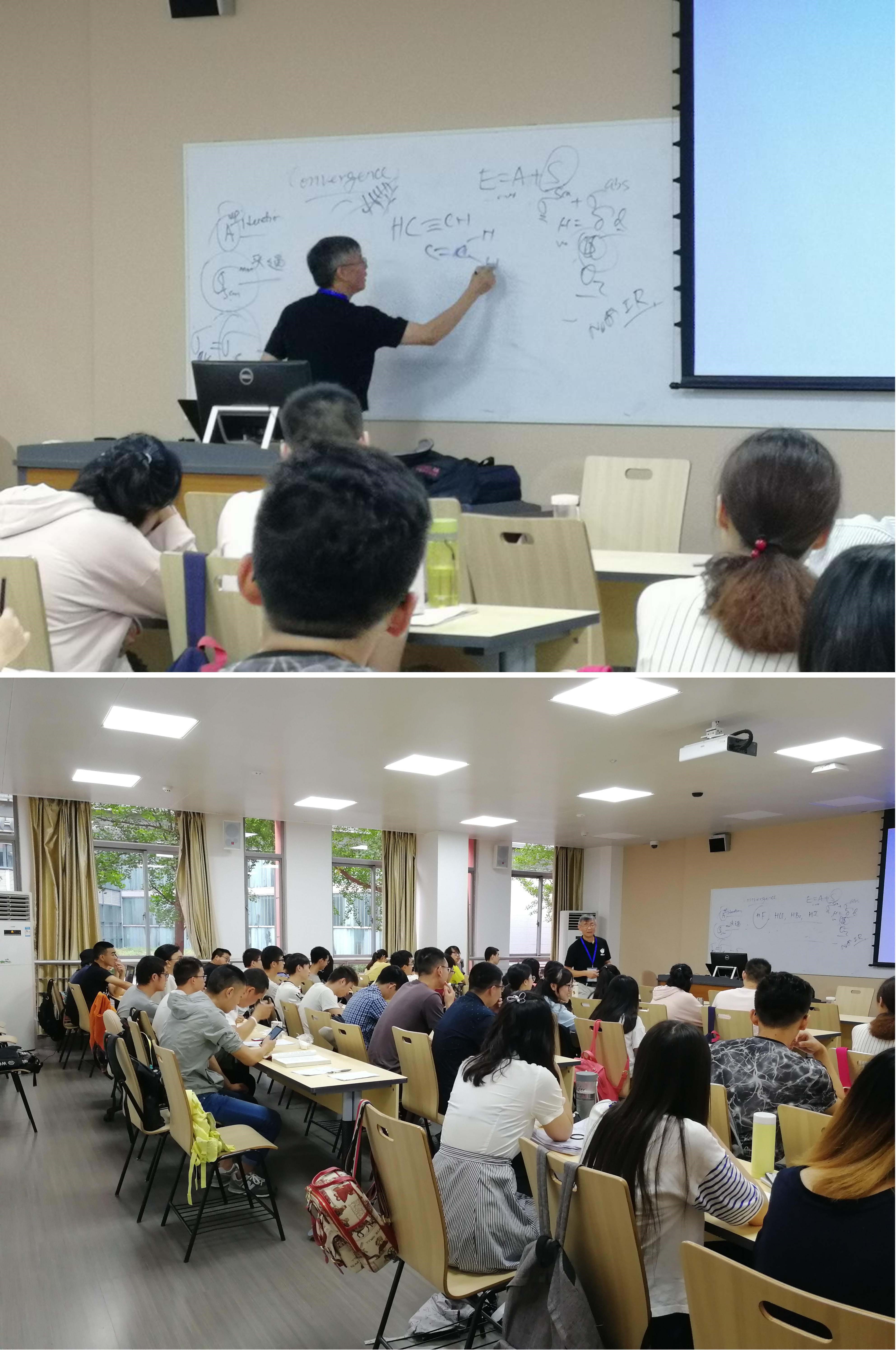 第一天上课的早上,天空还飘着绵绵细雨,江安第一教学楼 A座109教室出现了一个忙碌身影——那就是为即将开始的课程进行准备的Zhang教授。在为期四天的教学课程中, Zhang详细的介绍了 UV-vis、荧光、拉曼和最新的偏振共振同步光谱方法的理论,并将理论与实验相结合,重点强调了相关仪器在实际应用中的利与弊。在对比中学习,不仅调动了学生的学习积极性,而且加深了同学们对于各种不同分析仪器在各种不同环境中使用情况的理解,同学们纷纷表示受益匪浅。