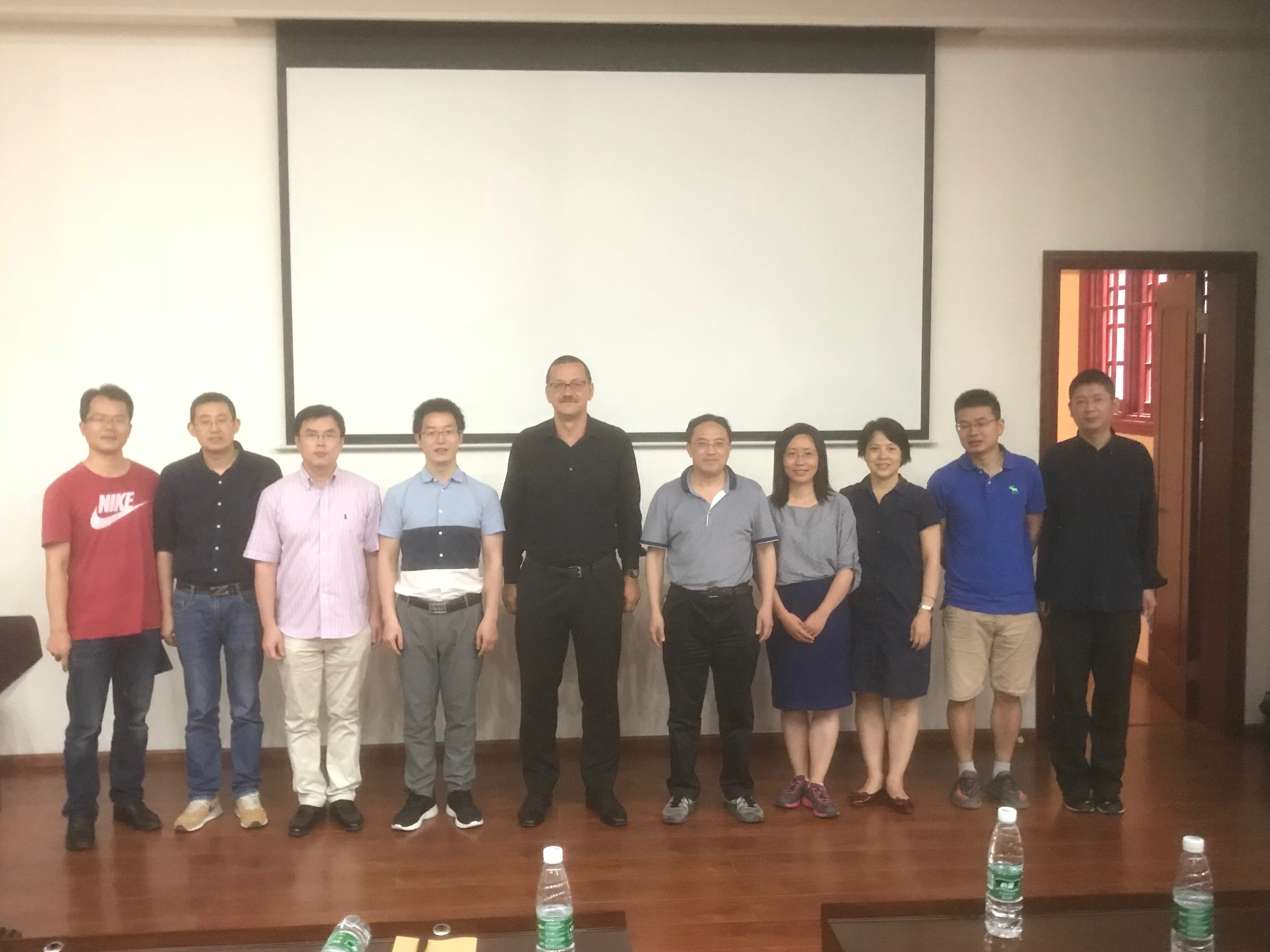 在报告中,Daugulis教授首先介绍了碳氢键活化的重要意义和一些代表性进展,指出了该领域中存在的关键科学问题,然后介绍了他课题组利用双齿导向基实现的一系列高效高选择性碳氢转化反应,重点介绍了从贵金属(钯)催化到廉价金属(铜和钴)催化的研究进展。最后,还介绍了他课题组最近利用羧酸导向实现的钴催化碳氢转化研究。整场报告内容丰富,Daugulis教授讲解深入浅出,师生获益匪浅。在随后的自由提问环节,在座师生以碳氢活化领域的前沿热点以及研究内容相关问题与Daugulis教授进行了热烈讨论。报告在热烈的掌声中落下帷幕,结束后部分老师与Daugulis教授合影留念。
