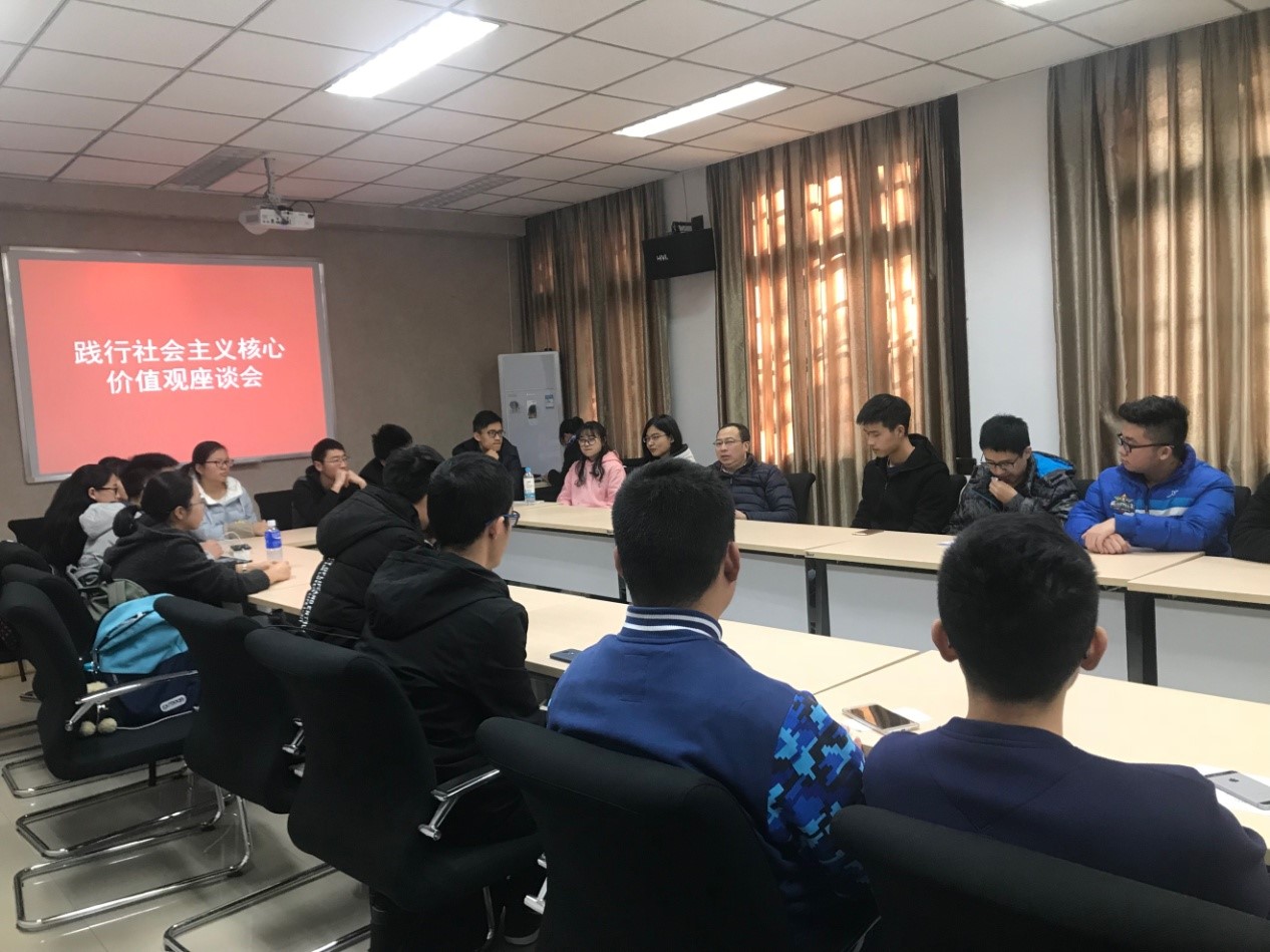 2017级、2016级拔尖班全体同学在望江校区化学馆122举行“践行社会主义核心价值观”座谈会。学院院长游劲松教授和教学科研科科长姜林老师参与了本次座谈。