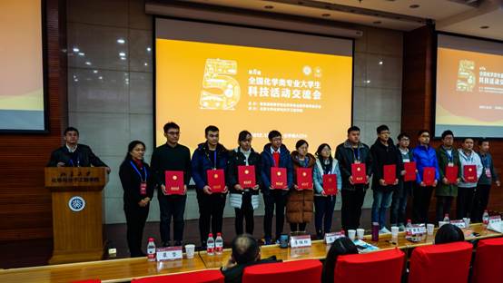 学生虞志乾同学以《方法学高效构筑杂环并异喹啉骨架》为题进行了口头汇报,并荣获“优秀报告”奖。此外,四名参会学生都制作了墙报并受到与会师生的关注和好评,其中傅永鸿同学的《基于环芳酰胺和咪唑主客体作用调控的低临界相转变体系》墙报荣获“优秀墙报”奖。