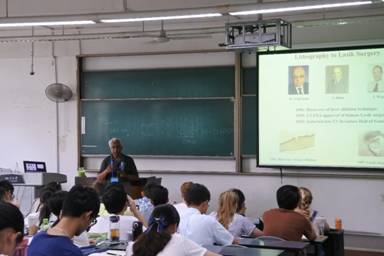 Ramamurthy教授先从光和生活密切相连开始,讲解了光化学在真实生活中的应用,激起了同学们对光化学的浓厚兴趣。接着教授又讲授了一些分子光化学的基础知识,如光与分子间的反应,吸收与发射,能量与电子转移,手性光化学等等,为同学们深入学习光化学奠定了坚实的基础。在课堂上,同学们认真听讲,积极讨论,踊跃提问,对分子与超分子光化学有了进一步的了解。通过这次国际课程周,同学们获得了与国际一流专家学者深入交流的机会,在丰富课堂生活的同时也拓宽了视野。