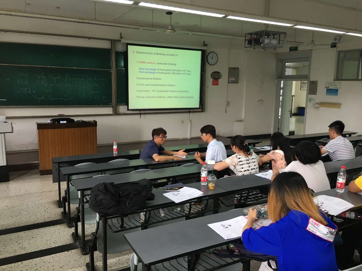 二年级的同学们正在津津有味地听着一堂名为”supramolecular chemistry”的课程。每一位同学都全神贯注,时不时有人举手提问。但这不仅仅是一堂普通的化学课程。Kim教授的课堂不仅内容丰富新颖,而且幽默风趣,讲解深入浅出,引起了同学们的浓厚兴趣,获得了一致好评。