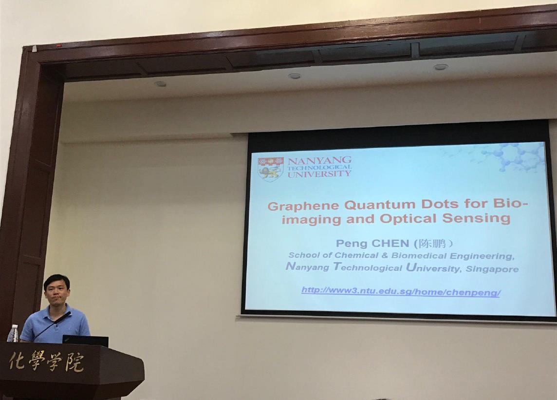 的邀请,2017 年6 月5 日上午,南洋理工大学陈鹏教授在化学馆321 报告厅做了题为“Graphene Quantum Dots for Bio-imaging and Optical Sensing”的学术报告。此次报告会由巴卡漫画