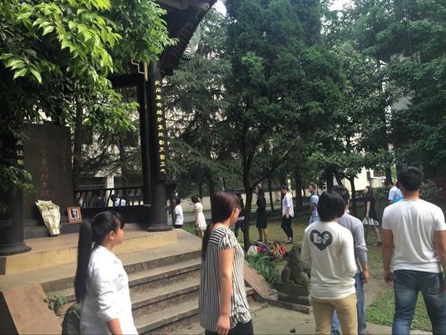 下午15:30分,纪念活动正式开始,首先全体肃立,高唱《中华人民共和国国歌》,随后谢均副书记为大家介绍了革命烈士纪念碑,并表示在“五四青年节”这个特殊的日子举办这个纪念活动具有的深刻意义。学生党员代表田俊、胡欣月与大家一起分享了恽代英、江竹筠先烈的生平事迹,同学们都被先烈们甘愿为革命事业抛头颅洒热血的无私奉献精神感动鼓舞着。随后,党员同学们向革命烈士纪念碑敬献鲜花,并高唱共青团团歌。最后,全体党员对纪念碑行鞠躬礼、并绕行纪念碑一周,瞻仰革命烈士纪念碑。
