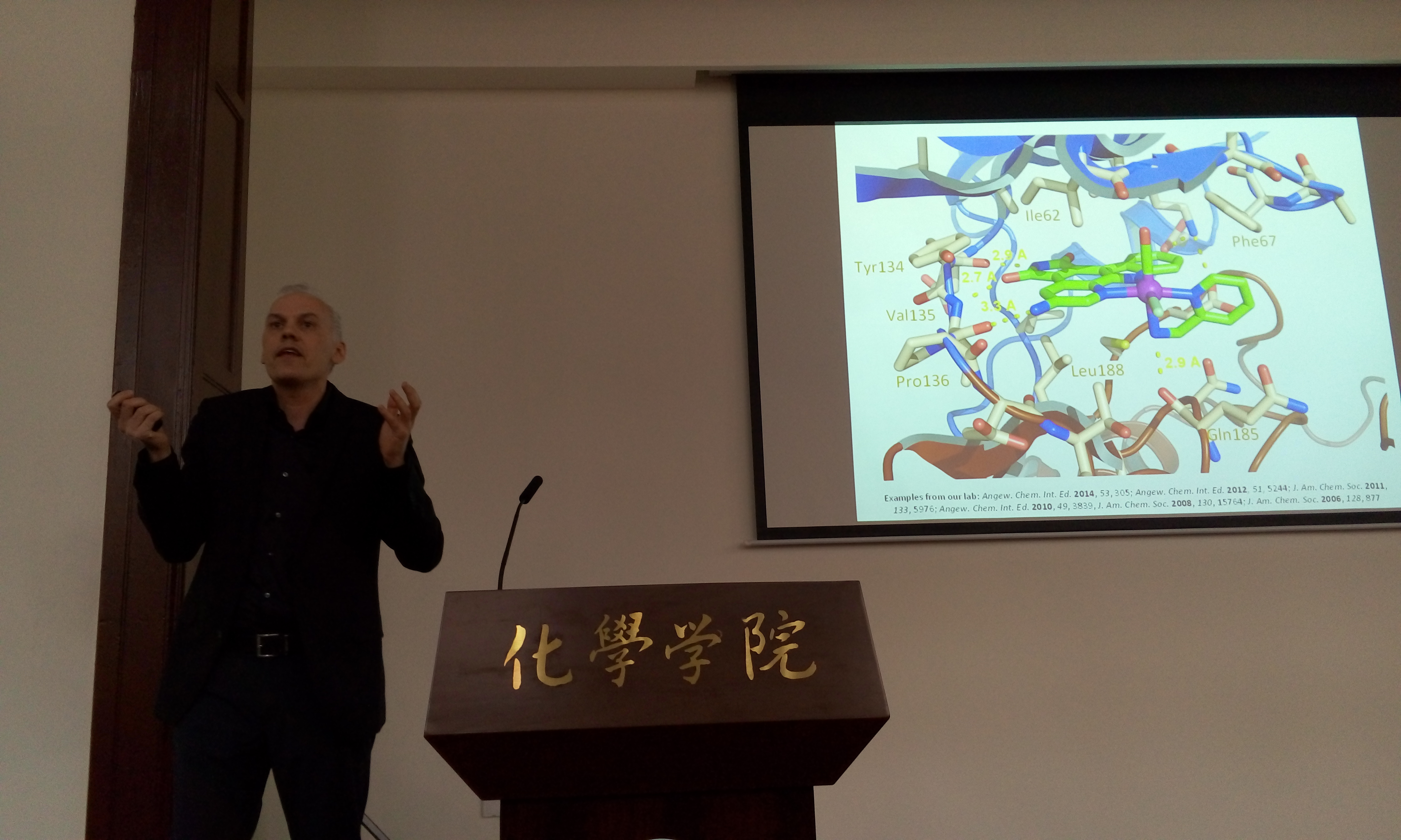 并进行了学术交流。在化学馆321报告厅,Meggers教授做了题 为“New Avenues for the Design of Asymmetric Catalyst”的学术报告,报告中教授Meggers介绍了实验室根据利用八面体立体化学来设计新的不对称催化剂,具体研究内容:以低负载金属为模板的不对称“有机催化剂”和基于手性过渡金属配合物的不对称光催化剂。此次报告会由巴卡漫画