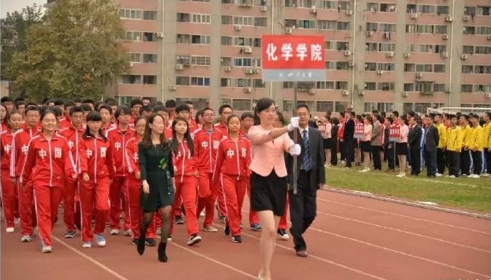 2015年秋季田径运动会开幕式正式开始,各学院的方队整装待发,等待检阅。看,巴卡漫画