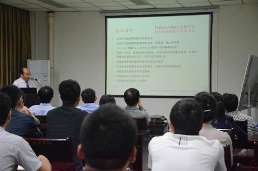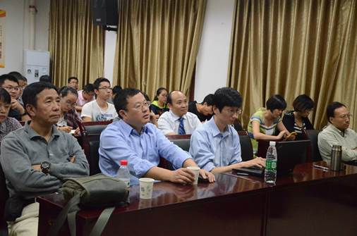 并进行学术交流。在化学馆121会议室,三位老师分别做了题为“肿瘤靶向放射性药物研究”、“Receptor-Targeting Melanoma Imaging”和“Lighting Up Diseases with Dark Materials”的学术报告。他们分享了各自课题组多年来在放射性诊断、治疗药物和核医学与分子成像方面的研究经验和方法,并介绍了近几年在放射性药物学方面的最新研究进展。我们学院院长余孝其教授主持了报告会,李首建、夏传琴、丁颂东、周翠松等教授和学生到场听取了报告。此次报告内容新颖,讲解深入浅出,激起了在座老师和同学的浓厚兴趣。报告结束后,三位老师与学院部分师生进行了热烈的交流和讨论。