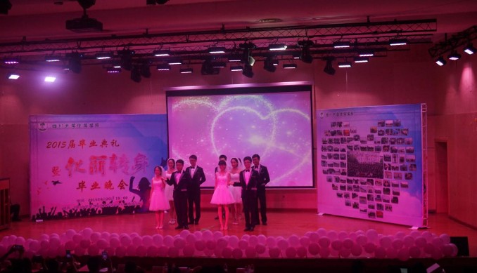 接下来 “化丽转身”毕业晚会正式拉开序幕。2015届的毕业生们为大家带来了异彩纷呈的节目,动感十足的《爵士舞》、深情款款的歌曲串烧《爱》、出人意料的舞蹈《化院“情侣秀”》、幽默风趣的小品《应聘》、优雅秀丽的钢琴和小提琴合奏《风居住的街道》、互动游戏《我最上镜》、满怀师生情的调酒《致青春》、华丽感伤的舞台剧《匆匆那些年》、男女混舞《长大》和情景剧《我们的回忆》。晚会还设置了微信抽奖环节,为幸运者们送上了精美的小礼物。一次次的掌声,一次次的欢笑,一次次的感动,一次次的泪水,晚会就在这样的依依不舍和流连忘返中谢幕。