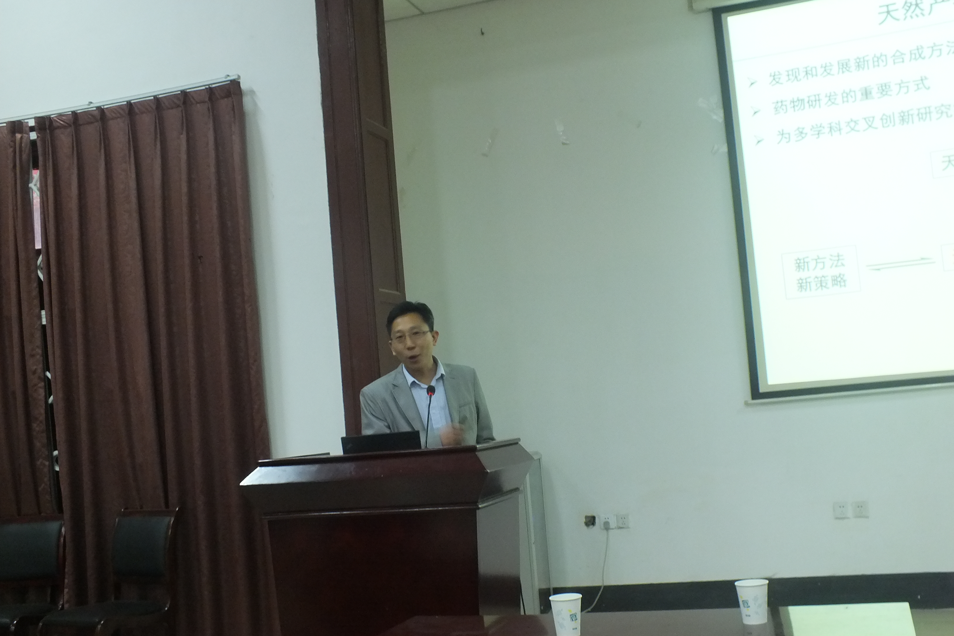 做题为“Total synthesis of polycyclic Natural products and Development of synthetic methodology”学术报告,报告在化学馆321报告厅举行。贾教授介绍了丝氨酸氨基诱导吲哚环4号位选择性C-H活化在多类吲哚生物碱天然产物全合成中的应用;Pd催化苯并呋喃的C-H活化氧化串联于天然产物Decursivine and Serotobenine全合成的应用以及天然产物Dragmacidin D的不对称全合成。贾教授在报告中系统而富有逻辑的研究,深入浅出的讲解让师生们颇受启发,随后巴卡漫画