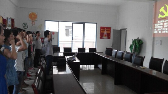 6:30,活动正式开始,肖老师主持此次活动,并宣布预备党员宣誓活动正式开始。随后肖老师指出今天大家能够站在这里成为一名党员,一名预备党员是一件十分光荣而有艰巨的事。作为一名党员,一定要有较高的觉悟,要树立时时刻刻为人名服务的信念;现在作为一名在校大学生,最重要的是学习,并在学习之余,投身到社会实践中,积极主动地锻炼自己,成为新时期的“四有”新人!