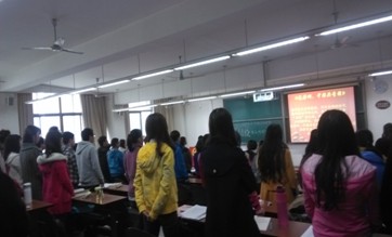 首先主持人宣布本次行课正式开始,并向同学们介绍了到场嘉宾。接着全体人员起立,合唱共青团团歌,同学们都唱的兴趣高昂、铿锵有力。然后是来俏老师在一阵阵掌声中上台,开始本次的行课。