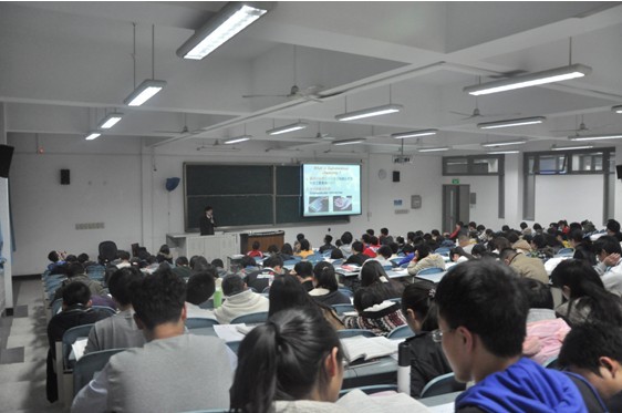 首先,袁立华教授简单的介绍自己在学术方面的经历,并且鼓励同学们有机会多出去学习,增长见识。随后,袁立华教授介绍了自己课题组目前的研究方向,从有机合成到高分子的合成再到放射化学,并展示了一些研究成果。接下来,以“壁虎为什么能飞檐走壁,倒挂悬梁?”这一问题引出本次讲座的主题——“超分子化学—解释自然界弱作用奥秘的钥匙”。解释到这与超分子化学有关,是壁虎脚掌上的细小刚毛与接触物分子的弱作用产生的效果。然后,袁立华教授简单介绍了超分子化学和分子化学概念下力的分类,并且略带哲学意味的讲到这些分类是带有人为性的定义,提醒同学们思维不要被这些概念所局限,思维要广泛。紧接着,袁立华教授就超分子化学的应用方面做了一些简单的介绍。最后是提问环节,同学们踊跃的提问,袁立华教授为同学们耐心细致的讲解。本次讲座在一片热烈的掌声中结束。