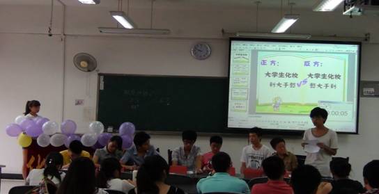 本次辩论赛不拘泥与形式,加入了表演的拉票环节,给予辩手充分的发挥空间,培养了参与活动同学的创新能力,团队合作能力,同时也给了学生自我展示的平台,有利于促进创新性人才的培养,推动我校综合素质教学改革。