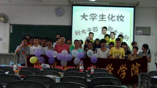 上午9:00活动正式开始。本次辩论赛的辩题是“大学生化妆是利大于弊还是弊大于利”。在辩论正式开始前,正方队员张威同学上台为大家带来了一段模仿秀,他一人分饰三角,表演了电影《泰囧》里的精彩片段,引得全场笑声不断,为本场辩论奠定了愉快融洽的基调。接着,正反两方开始了精彩的辩论。正方由一个简短有趣的视频表达出自己的观点,认为大学生化妆利大于弊,而反方则由一名队员上台展示PPT陈述观点。随后,双方各四名辩手开始了激烈的自由辩论,各抒己见,互不妥协。整场辩论不同于传统意义上的辩论,每队在最后都有2分钟的加时辩论时间和才艺表演拉票的机会。整场辩论都在欢快的氛围中进行,选手幽默而充满小智慧的对话,赢得大家接连不断的掌声。最后,经过在场评委的评判,正反以微弱的优势取得胜利。