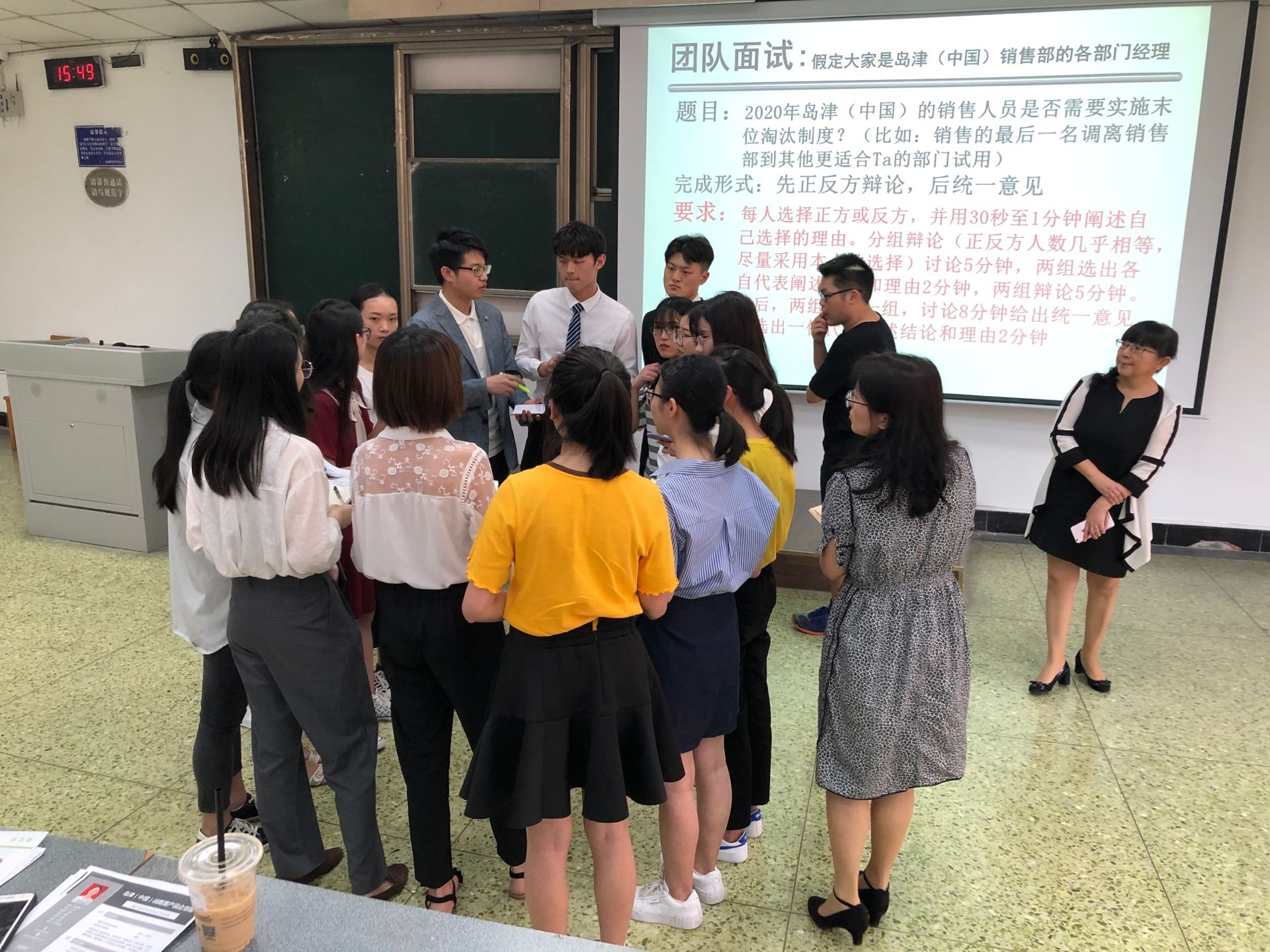 兼职教授马俪,岛津企业管理(中国)有限公司事业战略室产品企划部国广冲之部长、事业战略室产品企划部张燕,岛津企业管理(中国)有限公司四川分公司人事总务部廖春丽经理、人事总务部汤霞,以及15位面试同学参加了活动。