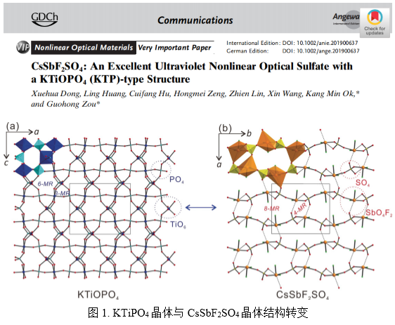 邹国红研究员与韩国西江大学学者合作,在非线性光学晶体材料研究方面取得重要进展,在国际顶级化学期刊Angewandte Chemie International Edition(IF=12.102)发表了题为“CsSbF2SO4 : An Excellent Ultraviolet Nonlinear Optical Sulfate with a KTiOPO4 (KTP)-type Structure”的研究论文,并被选为VIP (Very Important Paper)论文。该论文以巴卡漫画