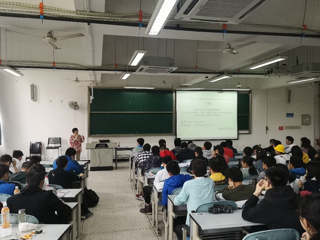 兼职教授、原岛津(中国)技术开发本部副本部长兼技术开发本部事业企划部部长马俪老师,为本院2018级本科同学带来事业启航系列讲座之“化学与生活”,2018级本科辅导员张若一老师也参加了本次活动。