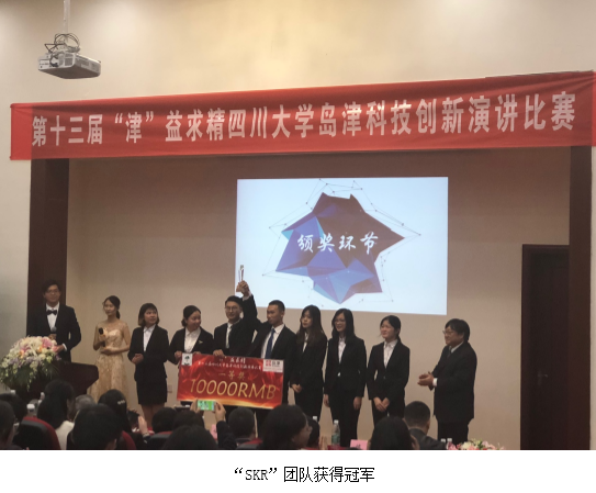 此次演讲比赛分为两轮,第一轮是产品介绍;第二轮是产品的效益和营销。根据赛前抽签顺序,第一轮演讲的顺序为:“SKR”团队,“遣唐使”团队,“厨匠”团队,“饮之源”团队。最终经过五位创新评审的点评和选择后决定,“遣唐使”团队和“SKR”团队获得进入第二轮演讲的机会。在第二轮演讲中,两支队伍分别介绍了他们的营销策略及产品价格,并拿出实力进行最后的角逐。冠军由现场的大众评审和所有在场评分老师打分来共同决定,最终“SKR”团队夺得第一名,“遣唐使”团队获得第二名,“厨匠”团队和“饮之源”团队获得第三名。由岛津公司领导、巴卡漫画