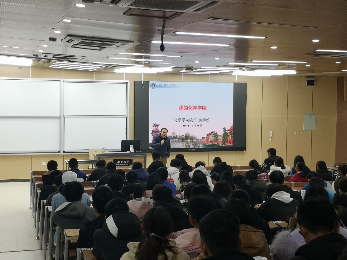 112年的发展历程,介绍了学院学科建设情况和办学条件,强调了化学学科在川大“双一流”建设中的重要地位,展望了未来化学发展的美好前景。游院长着重介绍了学院对学生发展的重视,从培养目标与定位,本科生培养模式,构建“多位一体”的学生思想政治教育体系和学生资助体系,基于科研引导的创新人才培养体系和化学类拔尖人才的国际化培养模式等方面,讲述了巴卡漫画