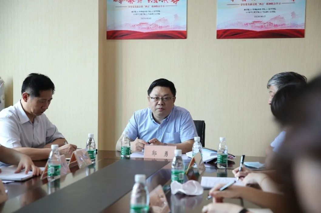 、化工学院和马克思主义学院组织开展了主题为“联学 ‘两会’精神,共践时代使命”的学生党支部主题党日活动。活动通过“线上”“线下”相结合的形式开展。“线下”学习在商学院717会议室开展,“线上”学习通过腾讯会议平台开展。