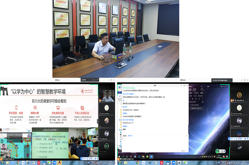 本次线上招生宣传由学院周向葛教授主讲,郑成斌副院长及多名学院老师在线参与了答疑工作,在线人数近百人。周教授首先从川大的历史底蕴、学科优势、教学科研特色、校园环境设施等诸多方面向考生及家长生动地展示了巴卡漫画