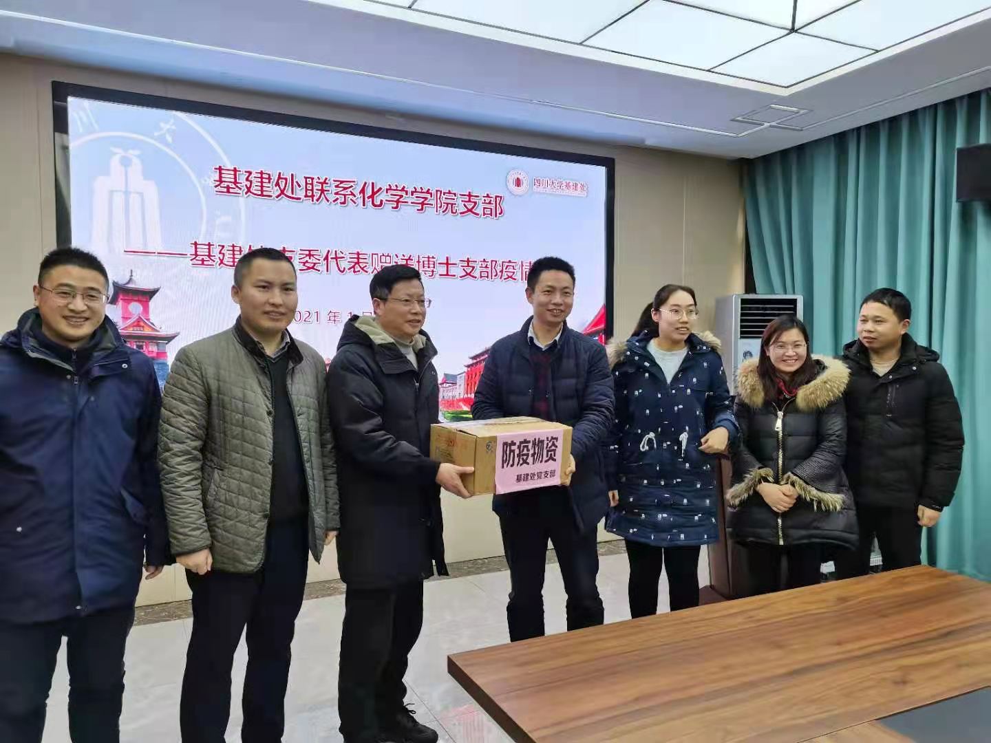 2018级博士支部赠送了防疫物资,勉励支部成员再接再厉,在科研上继续发挥吃苦耐劳的精神,勇攀高峰,李坤副院长对基建处支部表示感谢,座谈会取得了圆满成功。