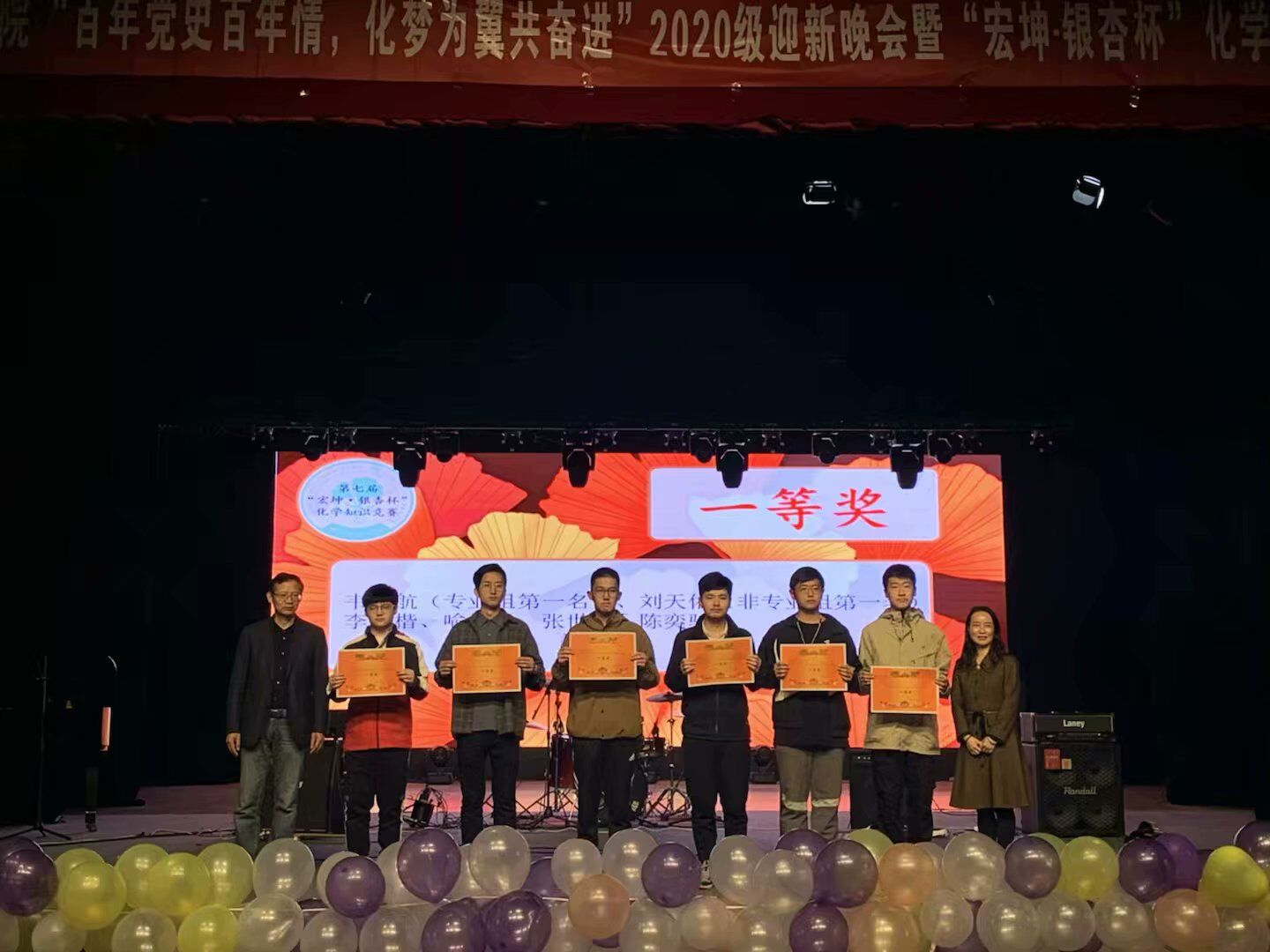 “百年党史百年情,化梦为翼共奋进”2020级迎新晚会暨第七届“宏坤·银杏杯”化学知识竞赛颁奖典礼在江安校区艺术学院小剧场举行。巴卡漫画