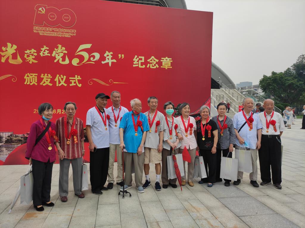 2021年6月23日,学校“光荣在党50年”纪念章颁发仪式在望江校区体育馆隆重举行。 “光荣在党50年”老党员代表,学院谢均书记以及10余名青年党员参加了颁发仪式。