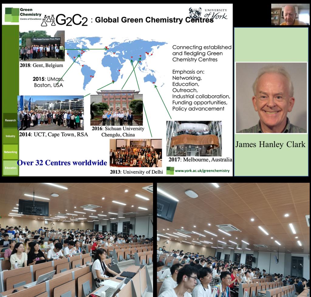 本次课程受到化院学子的广泛欢迎,还吸引了电气工程学院、计算机学院、建筑与环境学院、水利水电学院、轻工科学与工程学院、华西临床医学院、华西口腔医学院、数学学院等学院的同学们选课。课程采用线上与线下结合的方式,即同学们集中在教室,通过视频会议与Clark教授实时互动。Clark教授为同学们带来《Principles of Green Chemistry》、《Waste》、《Legislation》和《Greener Products》四个专题的讲座。同学们根据要求分组完成了《绿色化学相关文献阅读讨论》、《塑料的一生-角色扮演》两次课堂展示汇报。课堂全程使用英语,极大地锻炼了同学们的英语听说能力。化院大二同学们在军训的同时,靠着顽强的意志克服身体上的疲惫,认真听课,积极参加课堂展示。同学们课堂展示的内容丰富有趣,形式多样,令人印象深刻,得到Clark教授极高的评价。