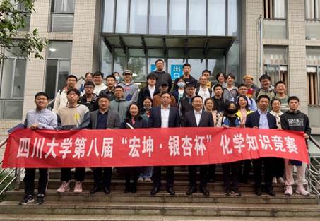 第九届“宏坤•银杏杯”化学知识竞赛正式开幕。颁奖仪式结束后,到场嘉宾与获奖同学合影留念。