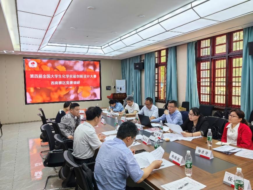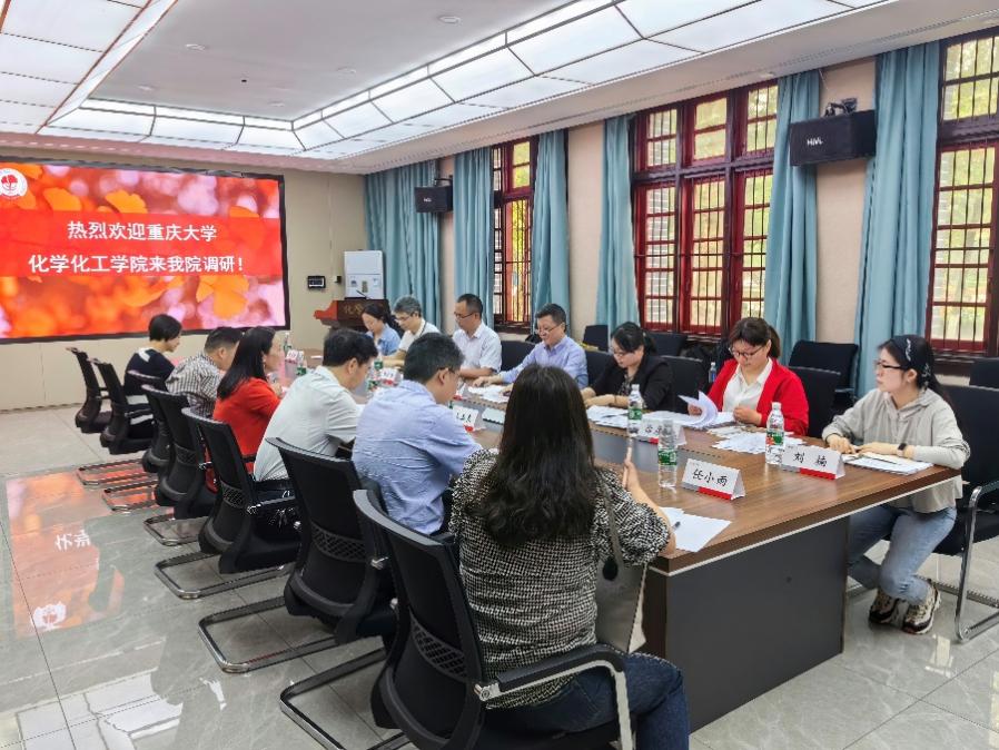 进行了介绍。随后,重庆大学化学化工学院副院长谢昭明教授对重庆大学化学化工学院的基本情况、人才建设、学科建设总体思路等进行了介绍。最后,双方围绕即将举行的第四届全国大学生化学实验创新设计大赛西南赛区的相关筹备工作、教学研讨会、化学实验教学中心建设、化学实验教学工作进行了深入的交流和讨论。