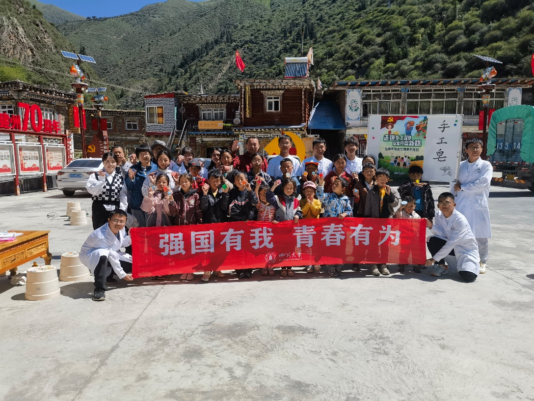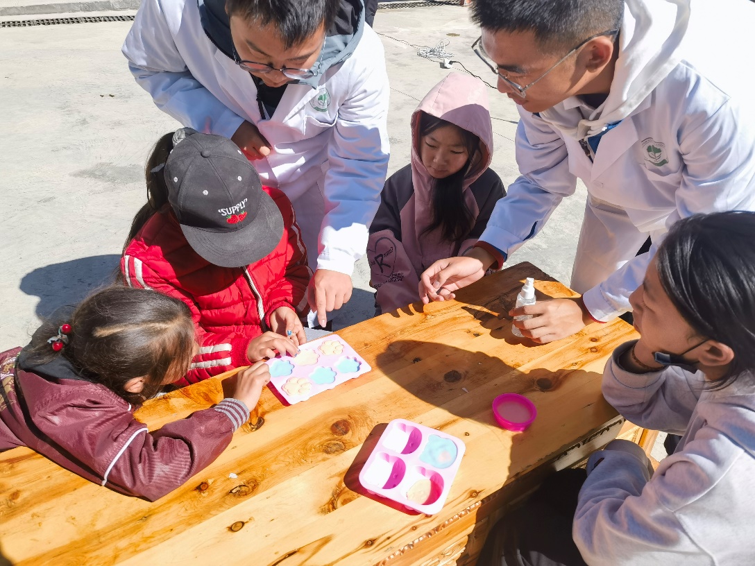 团队成员在壤古村面向当地村民和学生开展手工皂制作展示和体验活动,进行生活科学的普及和宣传。活动结合壤古村风景制作了具有当地特色的手工香皂,可通过与温泉产业结合,或打造特色文创产品,为当地产业创收提供新思路。