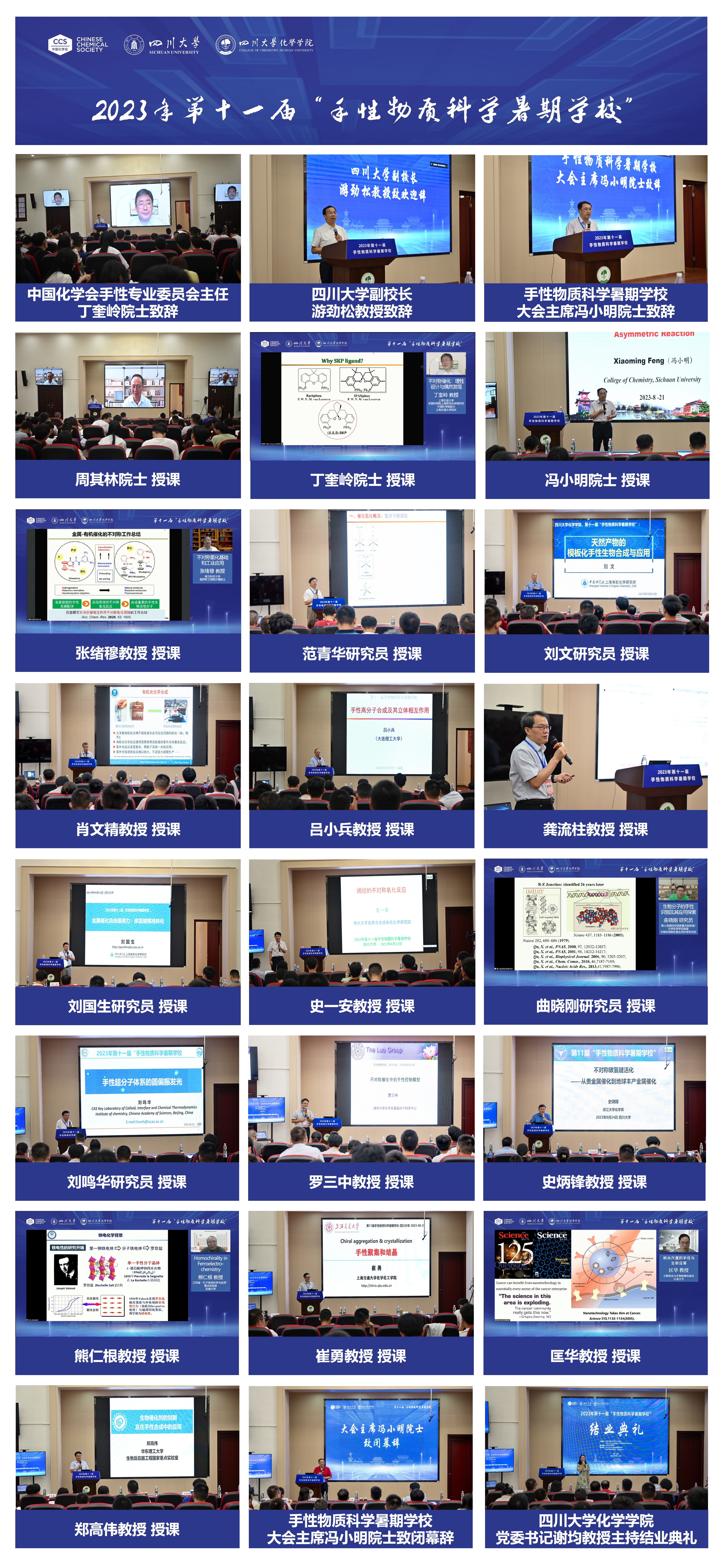 冯小明院士、南方科技大学张绪穆教授、中国科学院化学所范青华研究员、中国科学院上海有机化学研究所刘文研究员、华中师范大学肖文精教授、大连理工大学吕小兵教授、中国科学技术大学龚流柱教授、中国科学院上海有机化学研究所刘国生研究员、常州大学史一安教授、中国科学院长春应用化学研究所曲晓刚研究员、中国科学院化学所刘鸣华研究员、清华大学罗三中教授、浙江大学史炳锋教授、东南大学熊仁根教授、上海交通大学崔勇教授、江南大学匡华教授、以及华东理工大学郑高伟教授等19位授课专家围绕有机合成、无机合成、超分子合成、高分子合成、生物合成、纳米材料等多个涉及手性物质科学的研究领域,为学员们带来了一场全面了解手性物质科学理论基础和研究前沿的学术盛宴。