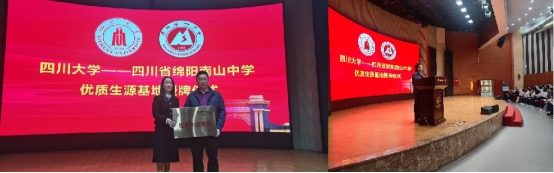 向南山中学进行“优质生源基地”授牌,南山中学党委书记徐勇接受牌匾并讲话,表示感谢川大长期以来对南山中学的支持,巴卡漫画