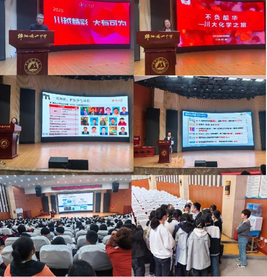 的培养体系,展示了在教学、科研和国际化方面的优势;刘华副教授以“报考川大,未来可期”为题,详细介绍了水利水电学院的学科特色和就业前景,阐述了水利水电学院在国家重大工程中的重要作用;宋信祺老师以“选择医学,成就未来”为题,通过丰富的图片和视频,详细介绍了华西临床医学院的学科优势和医学教育特色。最后在互动交流环节中宣讲团老师耐心解答了学生和家长关心的录取政策、专业选择、校园生活等问题。现场气氛热烈,掌声不断。