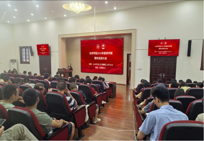 2025 年春季学期期末全院大会在望江校区化学馆 321 会议室举行,会议由学院党委书记谢均主持。