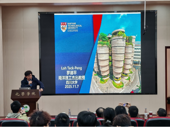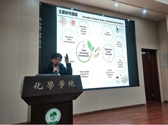 罗德平教授在报告中系统介绍了其团队在绿色与可持续化学领域的创新性研究进展。受大自然“以水为介质构建复杂分子”现象的启发,团队成功发展了以水为溶剂、室温中性条件下的金属催化反应体系,该体系兼具高效性、高选择性与生物相容性,从源头上减少了传统有机合成对有机溶剂和极端反应条件的依赖。他们还在不对称催化、串联反应设计、可逆键化学及新型催化剂开发等多个方向取得了一系列创新进展,为复杂分子的绿色合成提供了多元化解决方案。值得提及的是,这些基础研究成果已逐步转化为产业应用:在生物制剂与蛋白质精准修饰领域实现关键技术突破,为新药研发与疾病治疗提供了高效工具;在塑料循环回收领域取得的显著成效,为解决白色污染问题贡献了化学智慧。罗德平教授的分享生动诠释了绿色化学从“实验室发现”到“产业变革引擎”的跨越,彰显了其在推动可持续发展、塑造未来绿色经济中的核心价值。