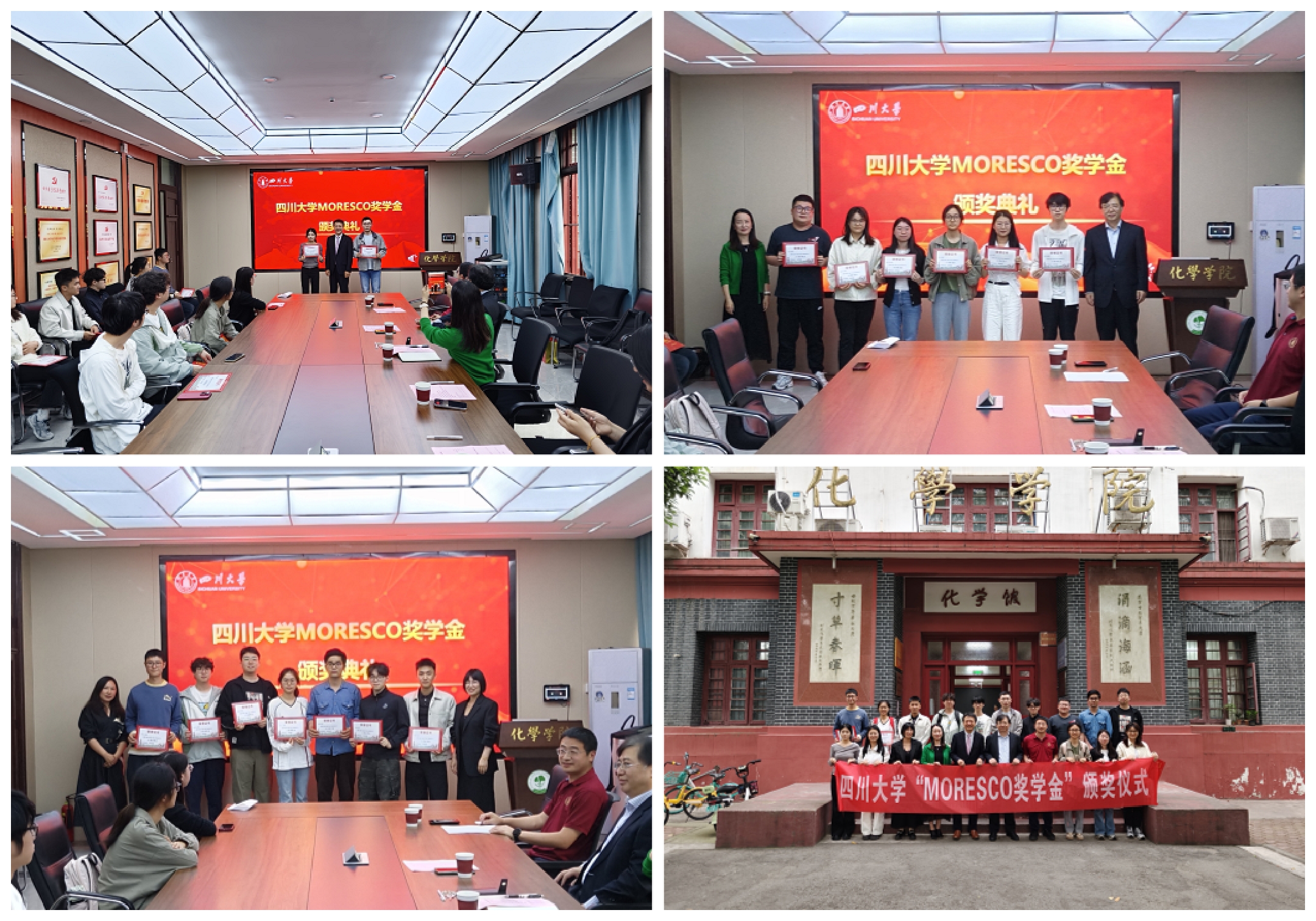 MORESCO奖学金颁奖典礼在化学馆122会议室顺利举行。株式会社MATSUKEN原社长大村洋一先生,株式会社MORESCO执行役员、莫莱斯柯贸易(浙江)有限公司、莫莱斯柯(浙江)功能材料有限公司董事长刘英进校友,莫莱斯柯中国研发中心经理杨帆校友,巴卡漫画