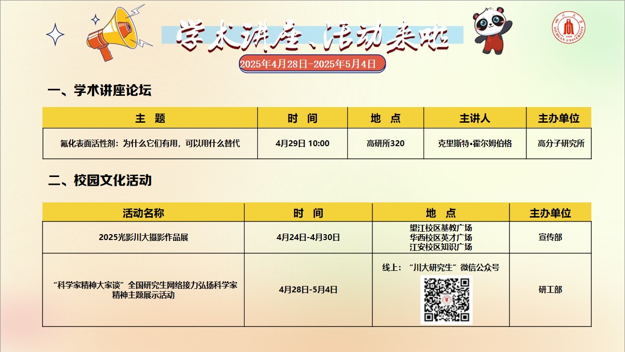 学术讲座论坛及校园文化活动预告(2025年4月28日-2025年5月4日)