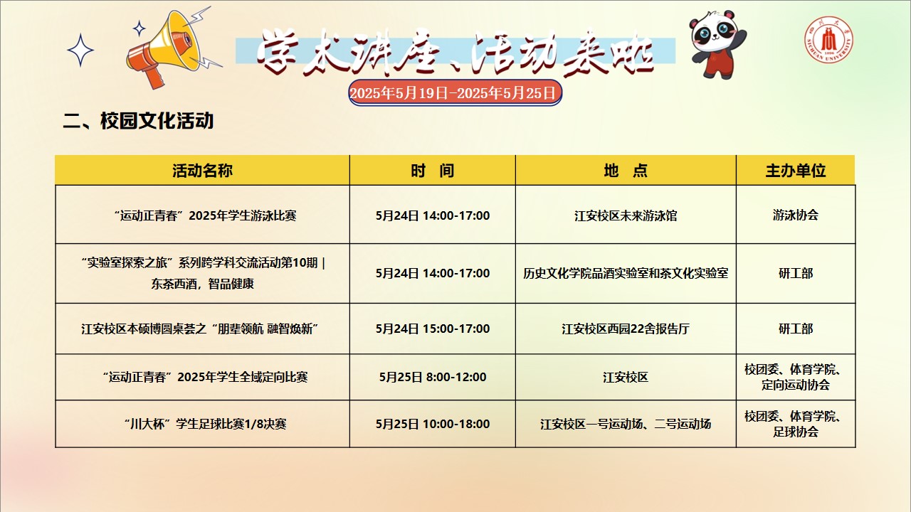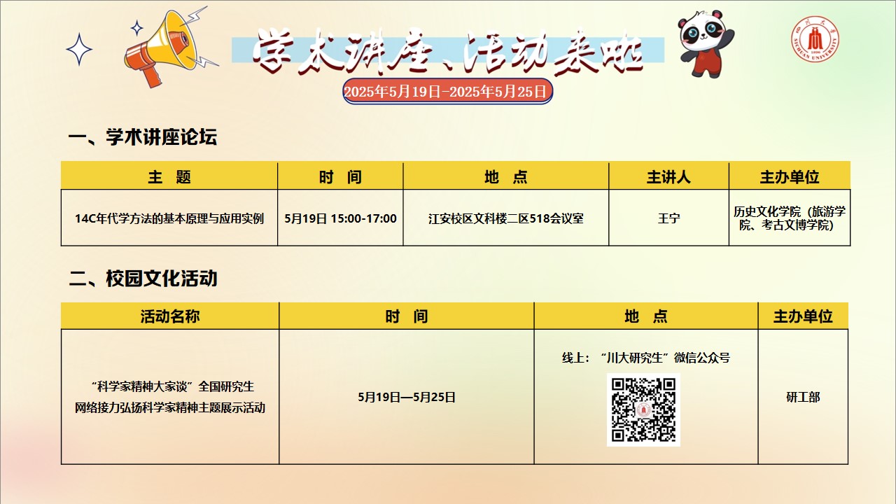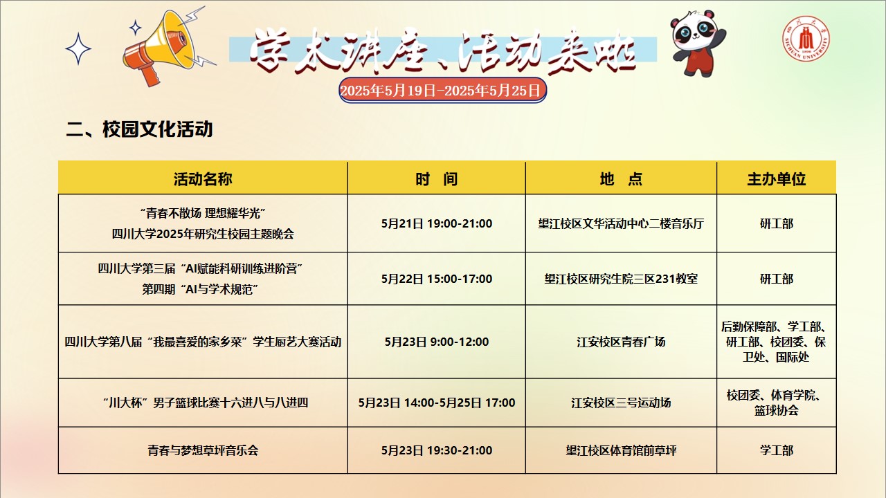 学术讲座论坛及校园文化活动预告(2025年5月19日-2025年5月25日)