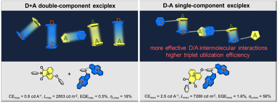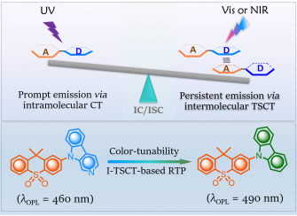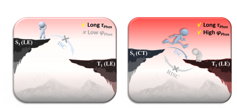 2. 提出了能兼具长寿命和高效率的纯有机室温磷光分子的理性构建策略