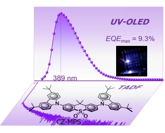 4. 构建出了首例具有紫外发射能力的热激活延迟荧光电致发光材料