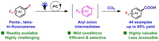 54.Z.-Y. Bo†, S.-S. Yan†, T.-Y. Gao, L. Song, C.-K. Ran, Y. He, W. Zhang*, G.-M. Cao, D.-G. Yu*, Visible-Light Photoredox-Catalyzed Selective Carboxylation of C(sp2)−F Bonds in Polyfluoroarenes with CO2. Chin. J. Catal. 2022, 43, 2388-2394. († Equal contribution)